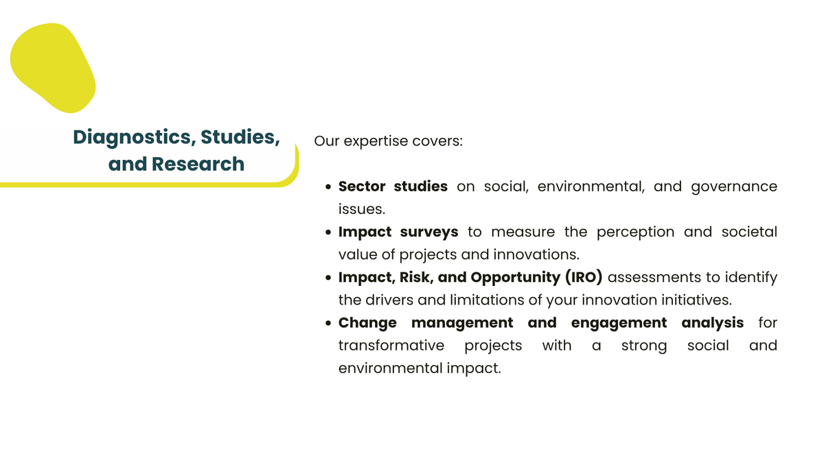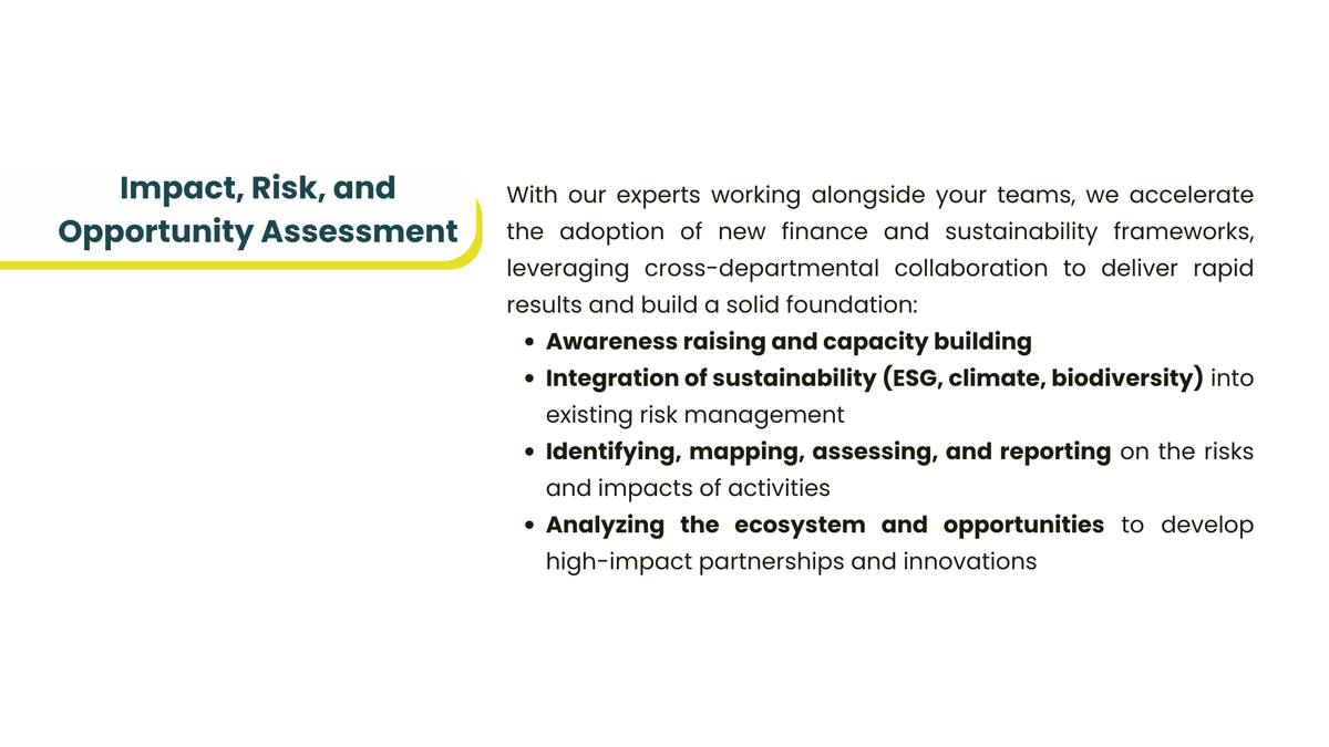By integrating risk management mechanisms and drawing inspiration from design thinking methods, we support our partners across the entire impact value chain.